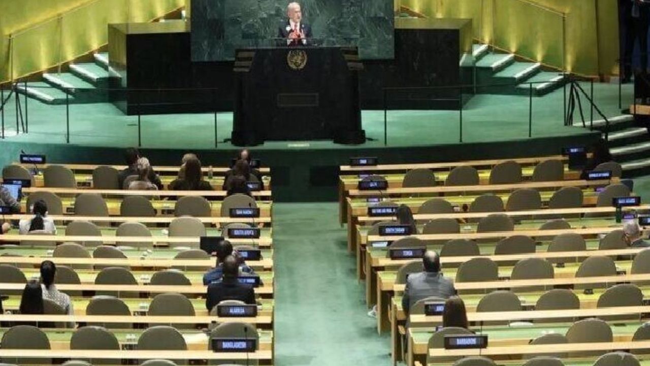 Haberde, Netanyahu’nun Gazze, HAMAS ve Filistin devletinin kurulmasına ilişkin ifadelerinin, diplomatik heyetlerin salonu boşaltması karşısında gölgede kaldığı vurgulandı.