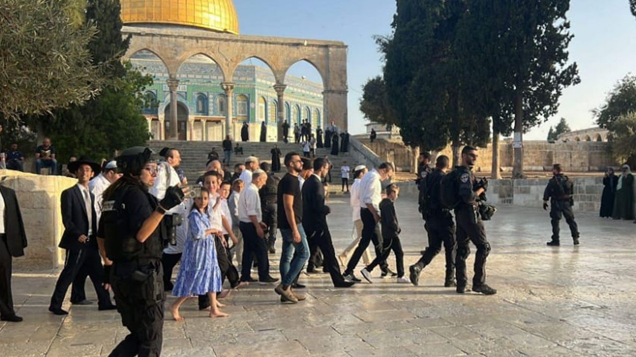 Yerel kaynaklar, onlarca yerleşimcinin yoğun işgal polisi koruması altında gruplar halinde Mescid-i Aksa'ya baskın düzenlediğini, avlularında kışkırtıcı turlar düzenlediğini ve Talmud ritüellerini gerçekleştirdiğini bildirdi.