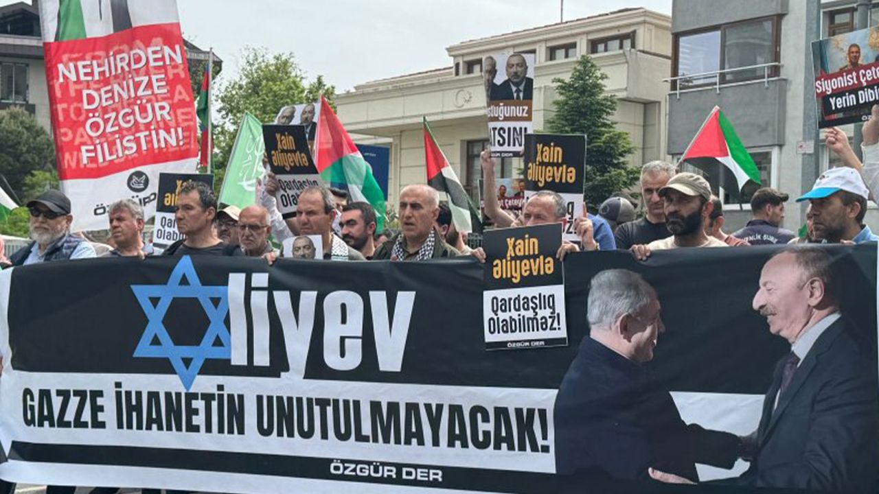 Özgür-Der'in çağrısıyla Azerbaycan'ın İstanbul konsolosluğu önünde bir araya gelen duyarlı halk, devam eden ilişkileri ve işgalcileri destekleyen söylemlerini sürdüren İlham Aliyev yönetimini protesto etti.