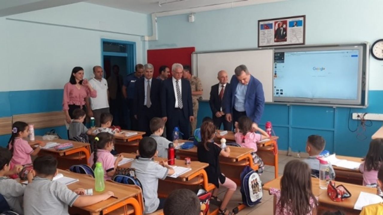 Cumhuriyet İlkokulu'nda devam eden programda Kaymakam Anteplioğlu ve beraberindekiler, öğrencilerle sohbet etti.