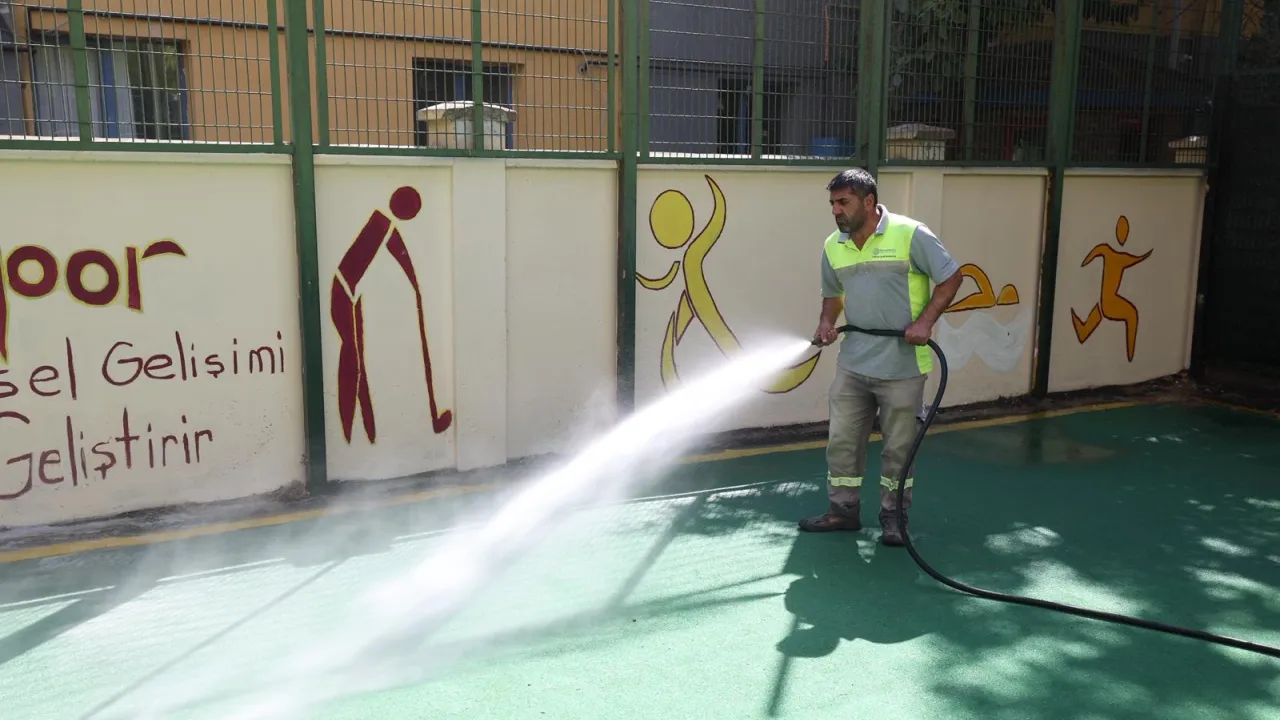 Yaz tatilinin bitmesine ve yeni dönemin başlamasına az bir zaman kala harekete geçen Fen İşleri Müdürlüğü ekipleri, ilçe genelindeki ilkokul, ortaokul ve liseleri boyayarak yepyeni bir görünüme kavuştururken Temizlik İşleri Müdürlüğü ekipleri ise okulların camları, sıraları ve yerlerini titizlikle süpürüp silerek tertemiz etti.