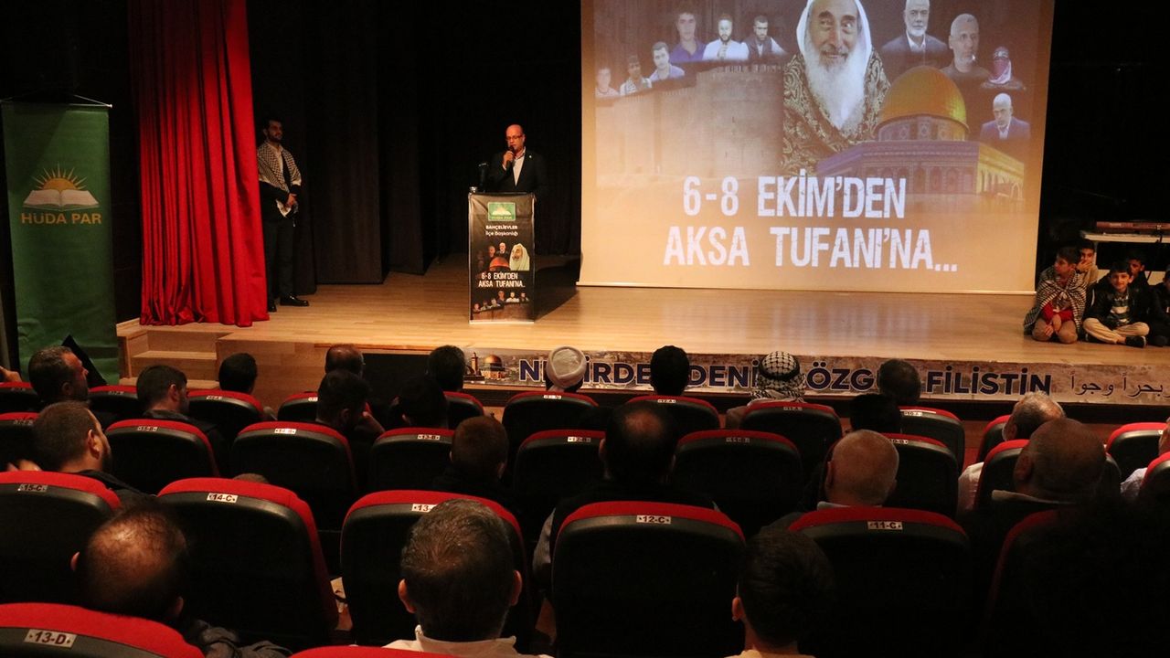 Diyarbakır'da yaşananlardan daha fazlasının soykırım boyutunda Filistin'de yaşandığını, Filistin davasının her zaman her yerde anlatılması gerektiğini hatırlatan Yel, "Aksa Tufanı ile başlayan süreçte bu savaş farklı bir boyuta evirildi. Aslında bu savaş, yaşanan insanlık suçları ve katliam daha önceden de vardı. Bu savaş 7 Ekim'de başlamadı. Bu öyle bir katliam ki, canlı yayında pervasız bir şekilde işleniyor. Sadece insanlar değil yaşama dair, insanlığa dair, medeniyete dair ne varsa her şey bombalanıyor. Aslında orada insanlık öldürülüyor. Orada İslam ümmetinin onurunun tabutuna son çivi çakılmak isteniyor. Oradaki mesele, o Müslümanlara karşı ilenen katliamlar tüm Müslümanlara, insanlığa karşı işlenmektedir. Hep birlikte insanlık cephesi adına Filistinli kardeşlerimizin yanında, savaşın tam ortasındayız." şeklinde konuştu.