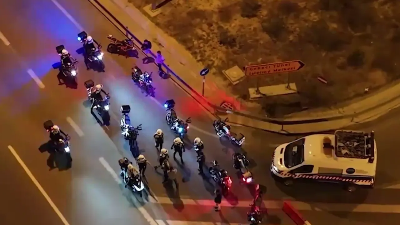 2 şüphelinin sürücü belgeleri iptal edildi, tüm motosikletler trafikten men edildi.