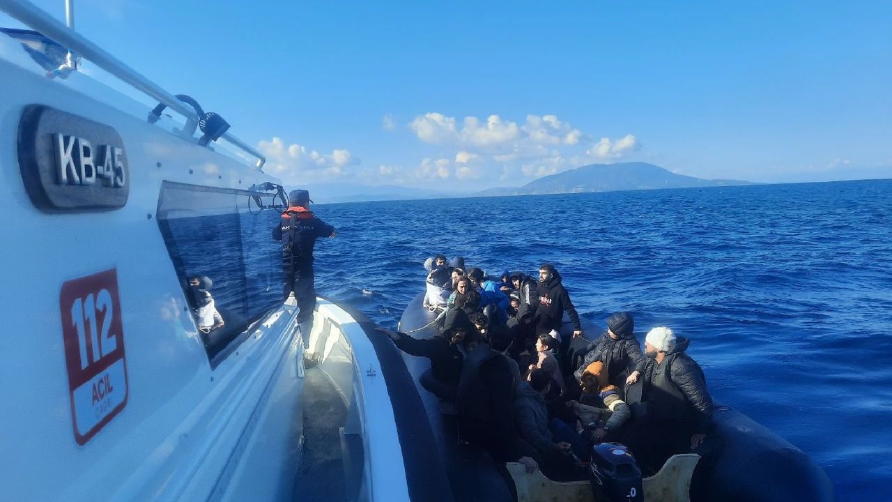 Ekipler, seyir hâlindeki lastik botu durdurarak aralarında 17 çocuğun da bulunduğu 29 düzensiz göçmeni güvenli şekilde yakaladı.