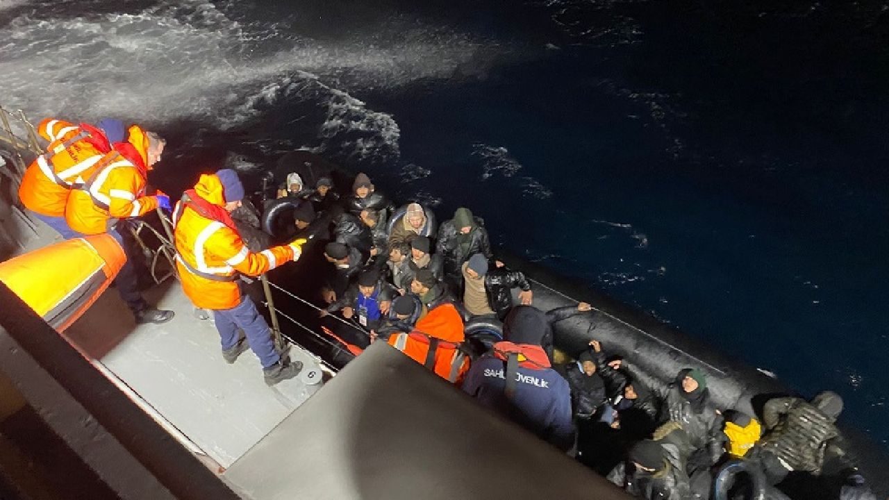 Bölgeye görevlendirilen Sahil Güvenlik Gemisi (TCSG-61) ve Sahil Güvenlik Botu (TCSG-907) ekipleri, lastik botta bulunan aralarında 3 çocuğun da bulunduğu 36 düzensiz göçmeni kurtardı. (İLKHA)