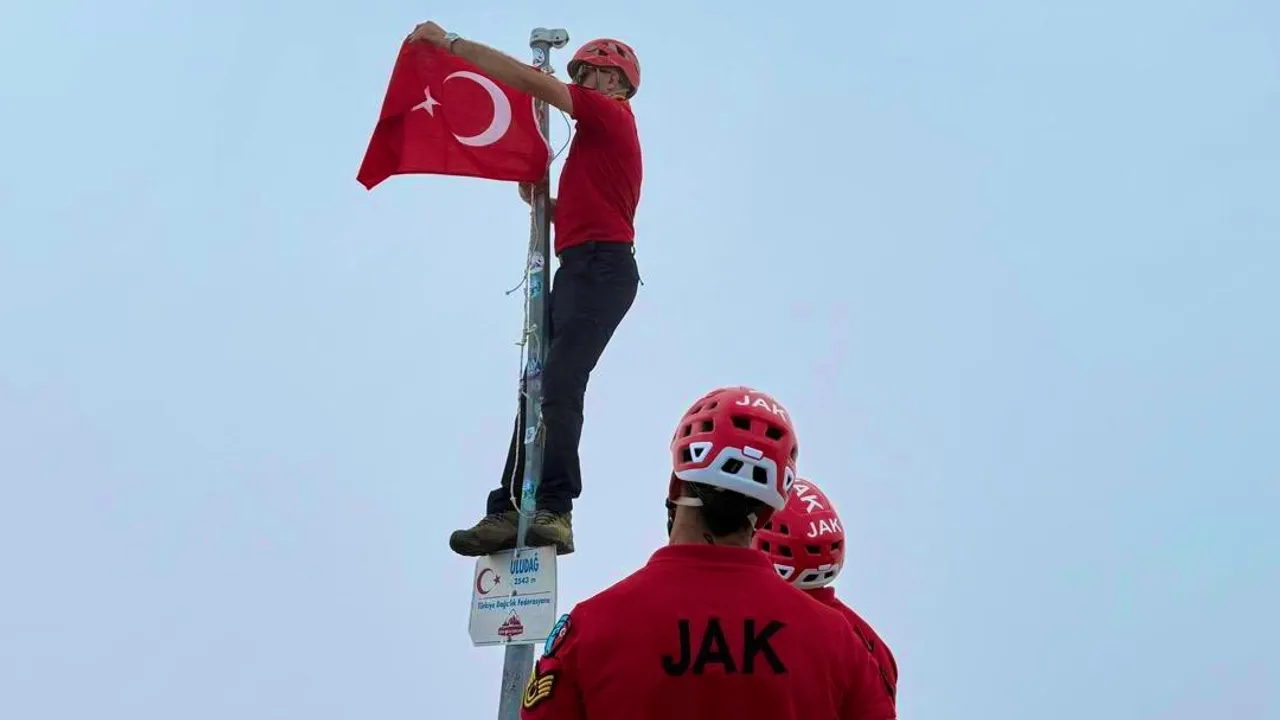 Uludağ Büyük Zirve’ye tırmanan JAK Timleri, 2 bin 543 metre rakımda bayrak değişimi yaparak Jandarma’nın 186 yıllık mirasını onurlandırdı.
