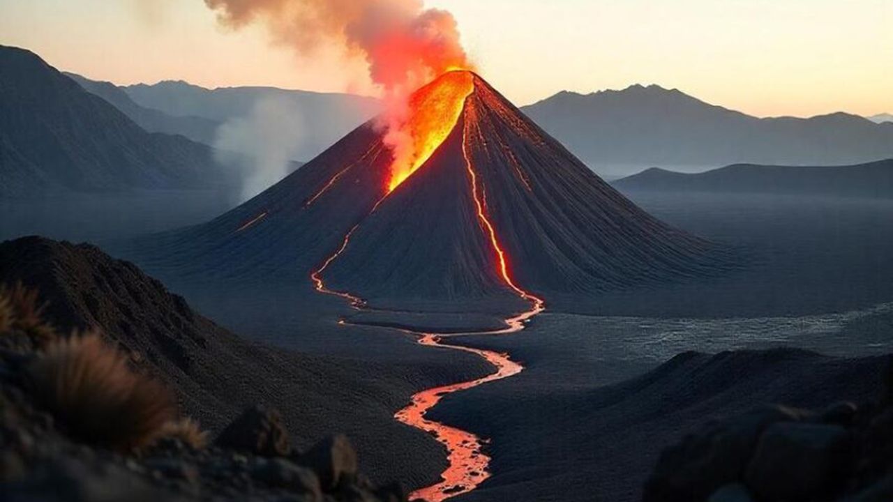 Yanardağ, 3 kilometre yüksekliğe kül püskürttü.