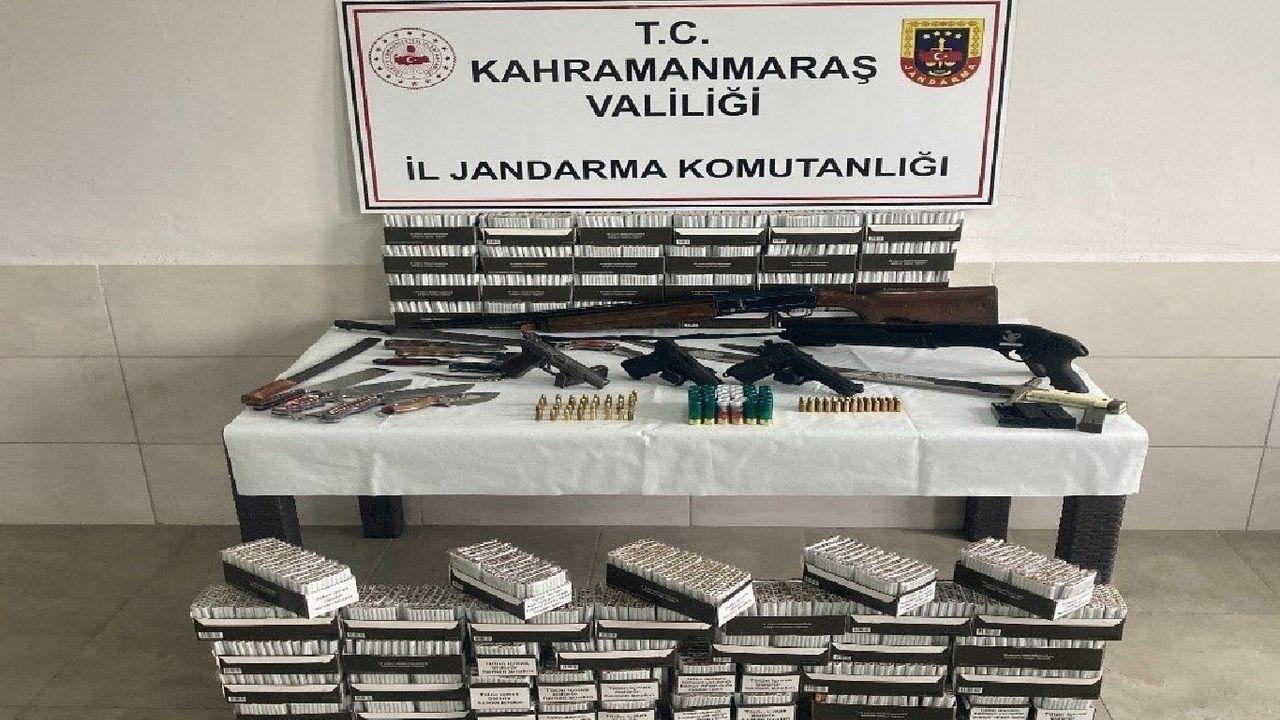 Operasyon kapsamında toplam 23 bin 520 adet dolu makaron, 83 elektronik sigara, 3 ruhsatsız tabanca, 2 otomatik av tüfeği, 7 tabanca şarjörü, 75 adet 9 mm çapında fişek, 35 av fişeği, 3 kılıç ve 13 kasatura ile balta ele geçirildi. (İLKHA)