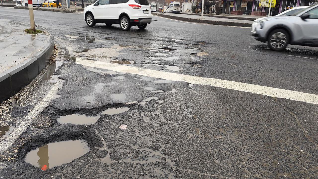 Kar yağışının ardından havaların ısınmasıyla eriyen kar, Diyarbakır genelinde bozuk asfaltı ve derin çukurları gün yüzüne çıkardı.