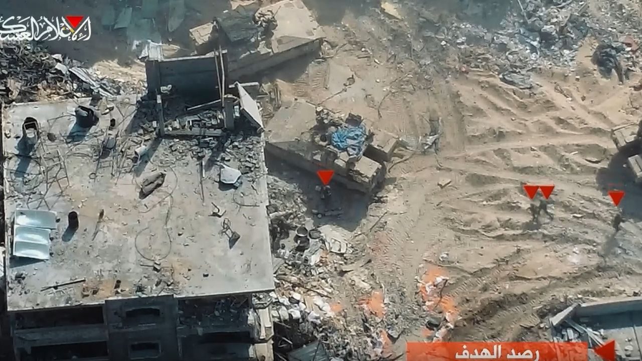 Havadan çekimlerin de yer aldığı görüntülerde, Kassam mücahitlerinin, ağır zırhlı askeri araçlarla çevrili bir binaya giren dört işgal askerini tespit ettikleri, ardından el bombasıyla saldırarak hafif silahlarla “sıfır mesafeden” çatışmaya girdikleri anlar yer aldı.
