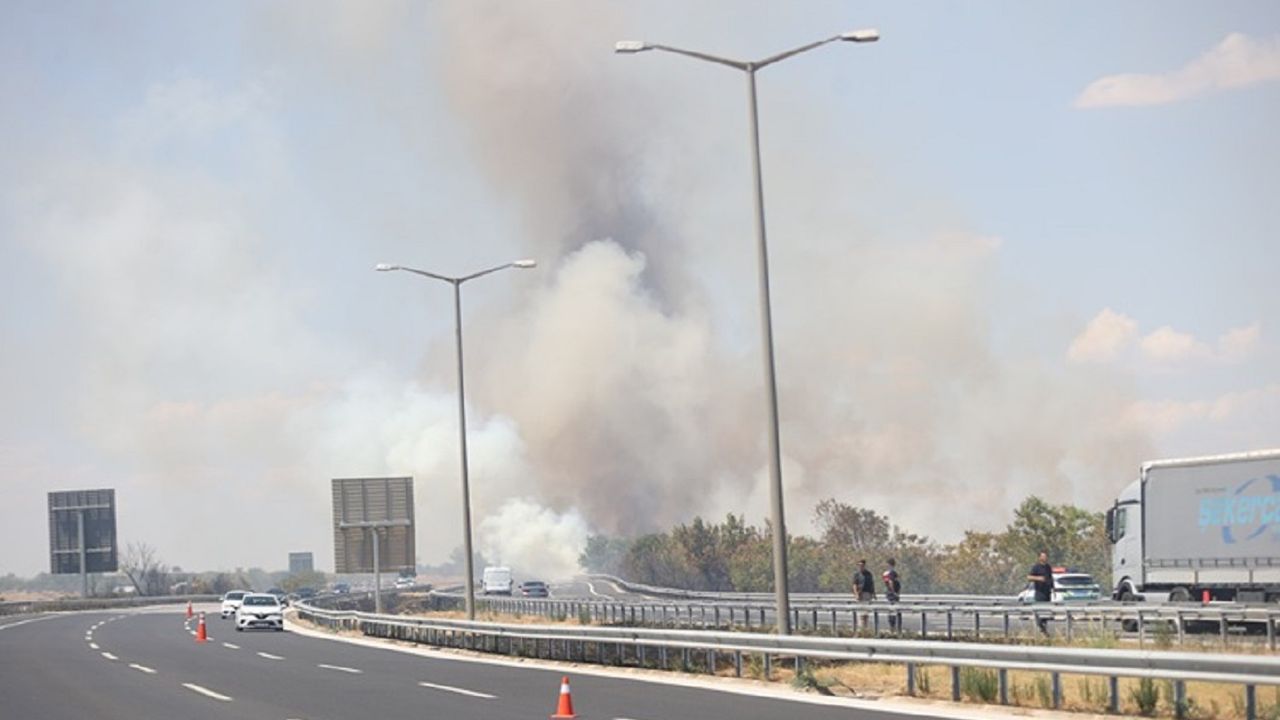 Yoğun duman görüş mesafesini azalttığı için Avrupa Otoyolu’nda trafik durduruldu. (İLKHA)