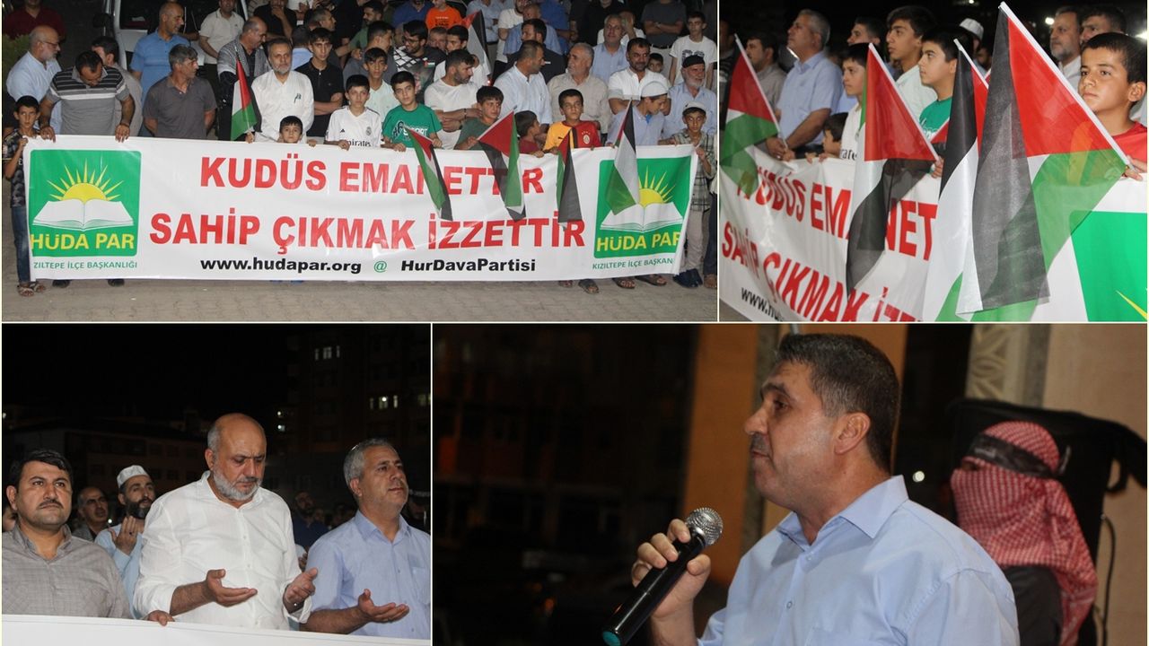 Kızıltepe ilçe otogarı Kenan Kösen Cami önünde düzenlen basın açıklamasını, Kızıltepe HÜDA PAR İlçe Başkanı Abdullah Kavan okudu.