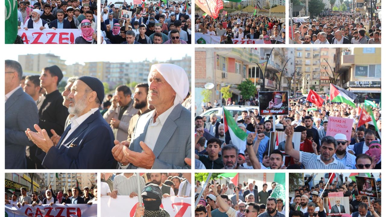 Kızıltepe Peygamber Sevdalıları Derneği tarafından düzenlenen “Kızıltepe Gazze’ye Sahip Çıkıyor” etkinliği Cumhuriyet Meydanından ilçe otogarına kadar yürüyüşle başladı.
