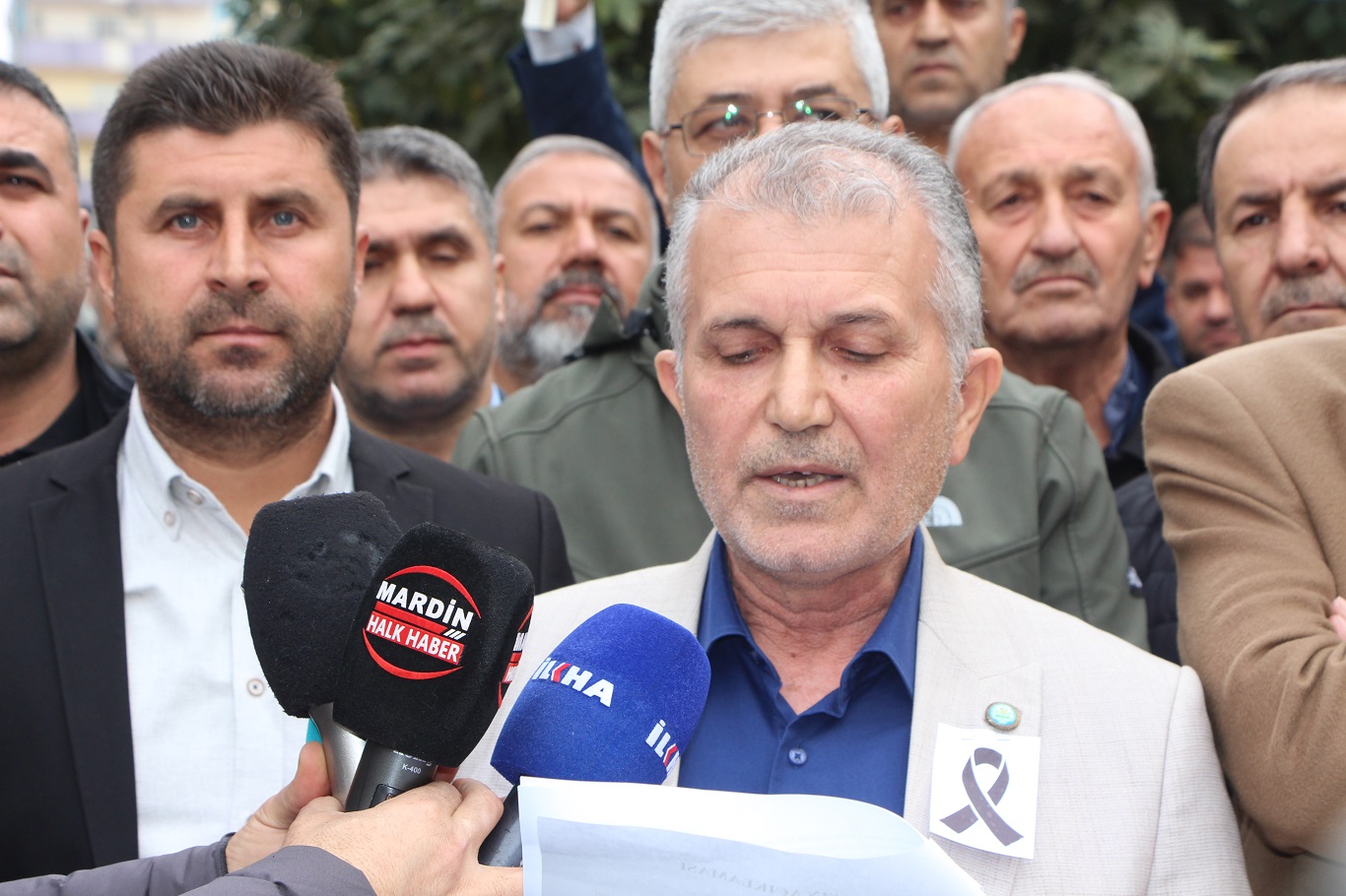Kızıltepe Cumhuriyet Meydanı'nda düzenlene basın açıklamasını, sivil toplum kuruluşları adına Mardin Toplumsal Dayanışma Federasyonu Derneği Başkanı Mehmet Şerif Öter okudu.