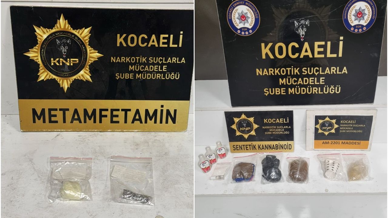 Yapılan aramalarda toplam 340 gram sentetik kannabinoid, 33 gram sentetik kannabinoid hammaddesi ve 10 gram metamfetamin ele geçirildi.