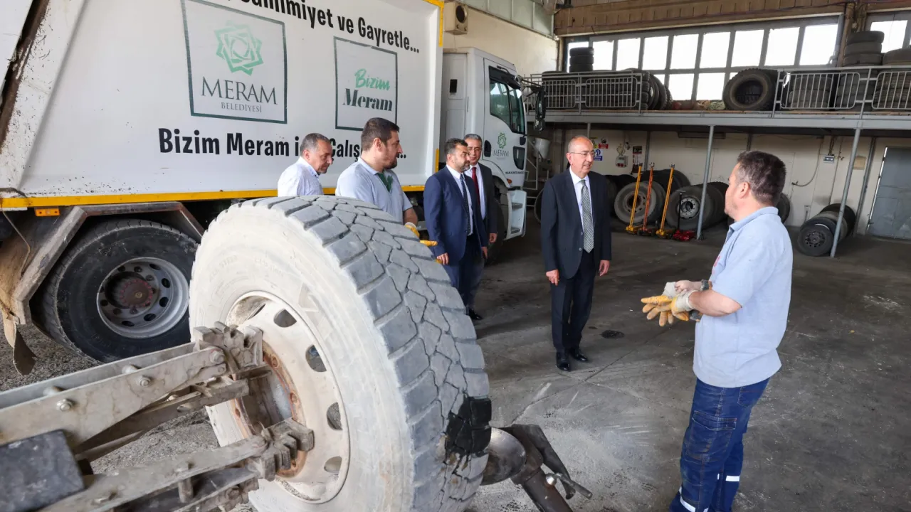 Meram Belediye Başkanı Mustafa Kavuş, belediyenin üretim ve teknik destek merkezi Arif Bilge Tesisleri’ni ziyaret etti. Tesis içerisindeki birimleri ve atölyeleri tek tek gezen Başkan Kavuş, çalışan personel, sorumlu müdürler ve teknik ekipten yürütülen çalışmalar hakkında bilgi aldı. Ziyareti sırasında atölyelerde görevli personelle hasbihal eden Başkan Kavuş, belediye hizmet araçlarının bakım, onarım ve yenileme süreçlerini yerinde inceleyip denetledi.