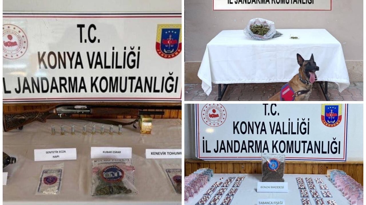 Toplamda 510 gram kubar esrar, 100 gram bonzai, 85 gram kenevir tohumu, 322 adet sentetik hap, ruhsatsız av tüfeği, fişekler ve uyuşturucu kullanmaya yarayan aparatlar ele geçirilirken, jandarma yetkilileri uyuşturucuyla mücadelede operasyonel faaliyetlerin kesintisiz devam edeceğini belirtti. (İLKHA)