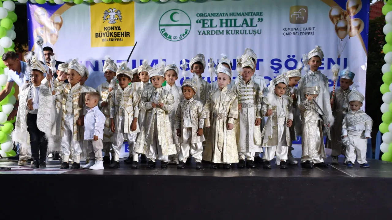 Konya Büyükşehir Belediyesi ile Üsküp Belediyesi arasında imzalanan “Kardeş Şehir Niyet Protokolü" kapsamında Üsküp’te faaliyet gösteren El-Hilal Yardımlaşma Kuruluşu ile birlikte “Sünnet Şöleni” etkinliği düzenlendi.KONYA (İGFA) - Konya Büyükşehir Belediyesi, Üsküp Belediyesi ve El-Hilal Yardımlaşma Kuruluşu ile birlikte yetim ve ihtiyaç sahibi çocuklar için toplu sünnet şöleni gerçekleştirdi.