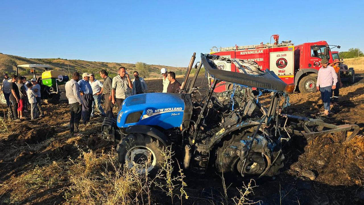 Alevlere müdahale sırasında, müdahaleye katılan vatandaşlardan birine ait traktör, alev alarak tamamen kullanılmaz hale geldi.