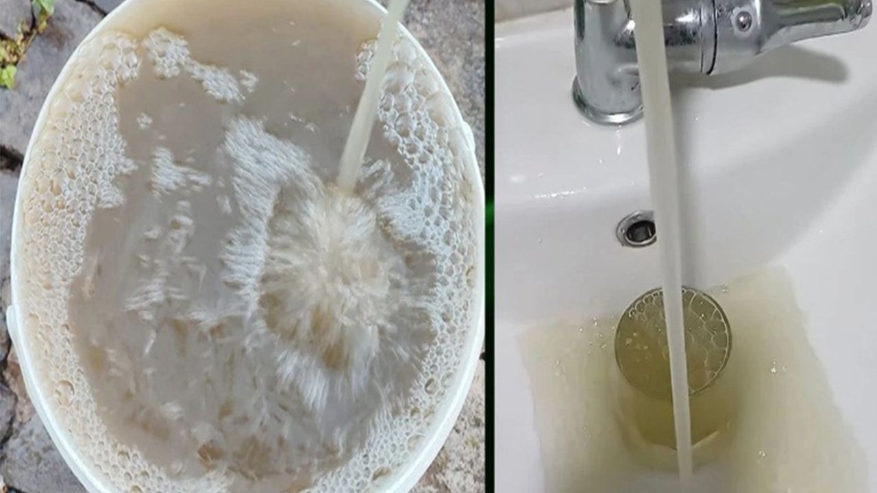Köy halkının cep telefonlarıyla kaydettiği görüntülerde, musluklardan sarı renkli, bulanık ve zaman zaman köpüklü su aktığı görülüyor.