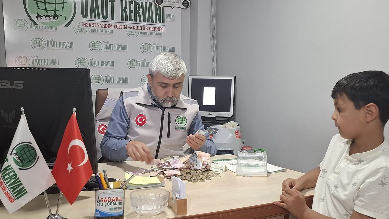 Gazze’de yaşanan insanlık dramından etkilenen Yasin Hattab, uzun süredir biriktirdiği harçlıklarını Gazze'deki kardeşlerine ulaştırmak için ailesiyle birlikte Van Umut Kervanı Derneği’nin yolunu tuttu.