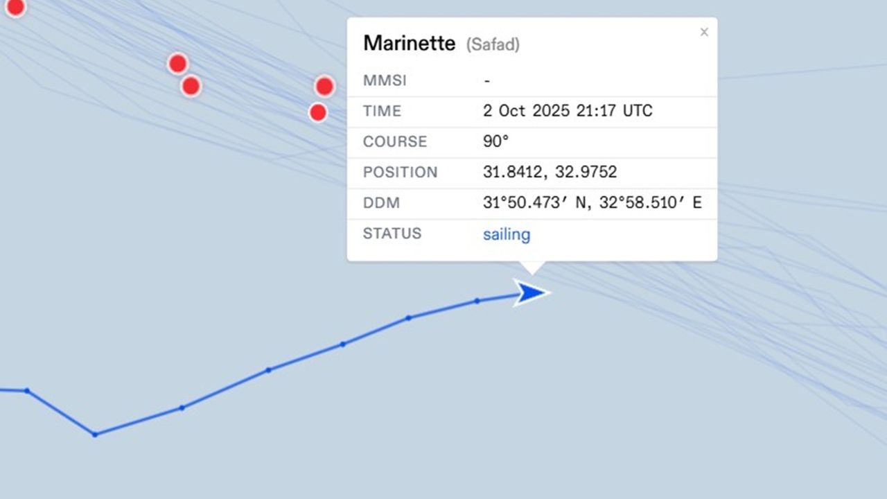 Filonun gemi takip sisteminde de "Marinette"nin, işgal ordusu tarafından yasa dışı ele geçirilen gemilerin bulunduğu noktanın en arkasında yer aldığı görülüyor.