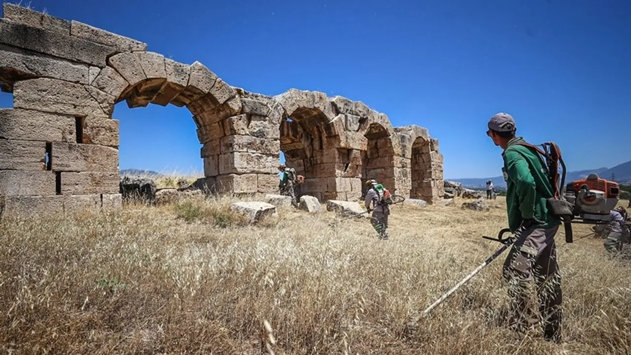 Denizli Büyükşehir Belediyesi, yaz aylarında artan hava sıcaklıklarıyla birlikte olası yangın risklerine karşı önleyici çalışmalarını sürdürüyor.DENİZLİ (İGFA) - Denizli a Park ve Bahçeler Dairesi Başkanlığı ekipleri, UNESCO Dünya Mirası Geçici Listesi’nde yer alan Laodikya Antik Kenti’nde yangın tehlikesi oluşturabilecek kurumuş yabani otları temizledi.