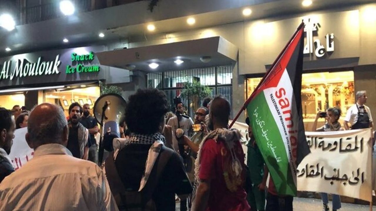 Göstericiler Hamra Caddesi’nde toplanarak Lübnan hükümetinin direnişi silahsızlandırma kararının, ABD ve Suudi Arabistan baskısı altında alındığını vurguladı.