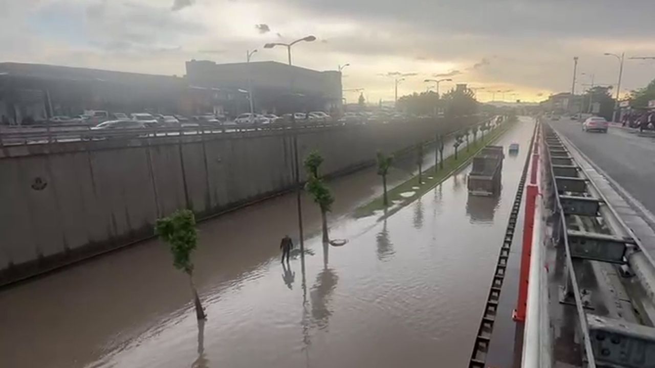 Kent merkezinde öğlenden sonra etkisini gösteren şiddetli yağış nedeniyle birçok alt geçit sular altında kalırken, Emeksiz Caddesi Şehit Üsteğmen Selim Keskinkılıç alt geçidinde bir ticari taksi, mahsur kalarak suya gömüldü.