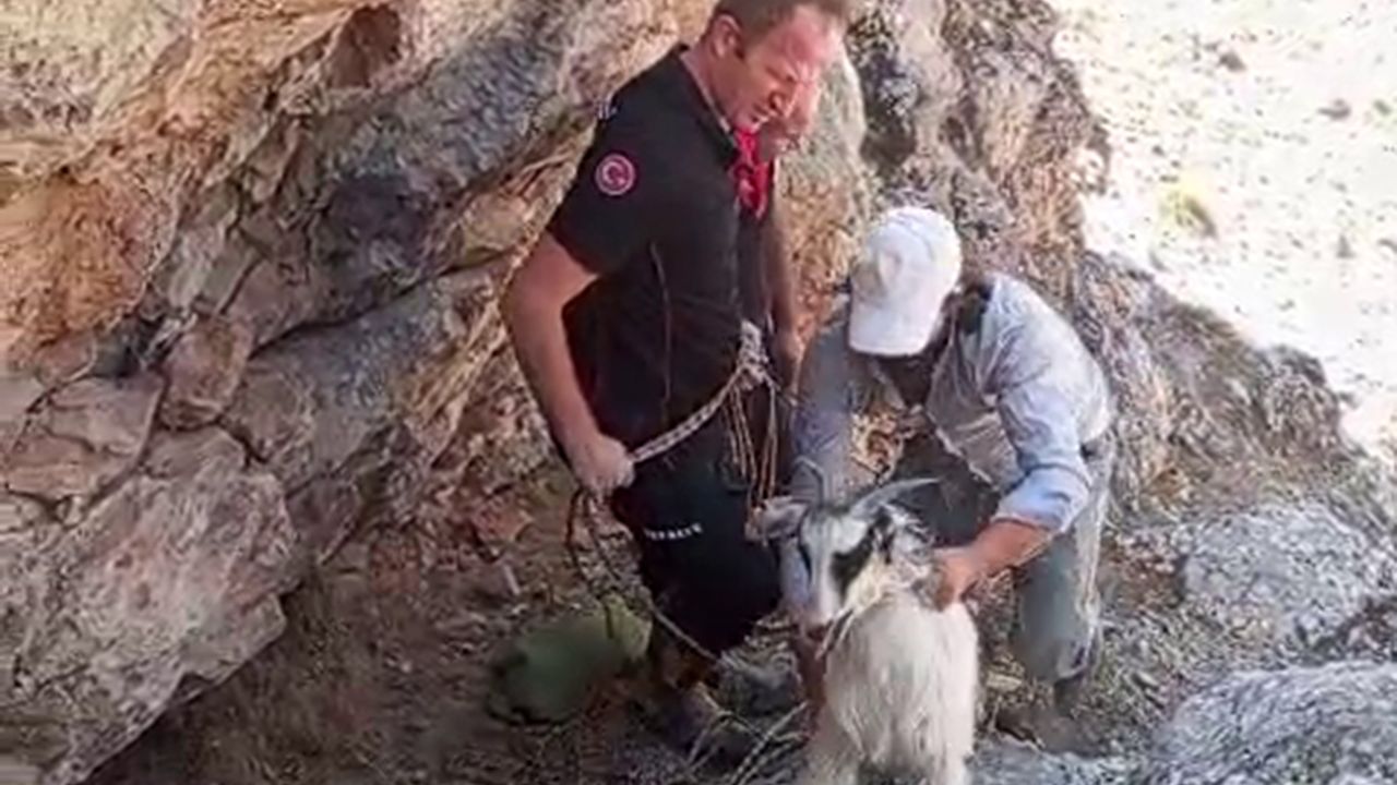 Ekiplerin dağlık ve engebeli arazide yaptığı titiz çalışma sonucunda mahsur kalan keçiler, bulundukları yerden güvenli bir şekilde çıkarıldı.