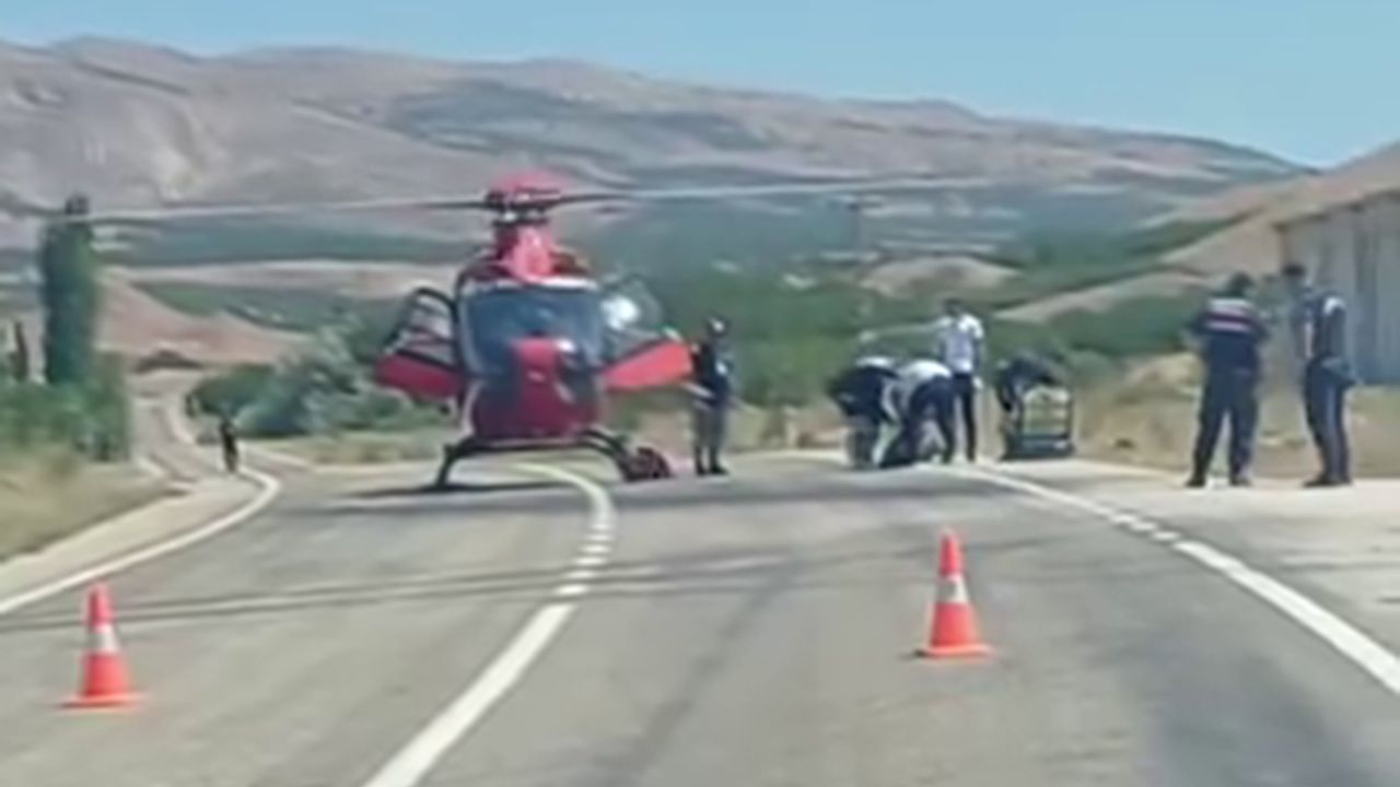 Helikopter ambulansla Malatya'ya getirilen hasta, Turgut Özal Tıp Merkezi Heliport alanında kara ambulansına devredilerek acil servise ulaştırıldı.