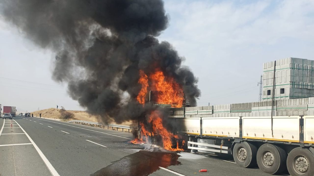 Edinilen bilgiye göre, Kale ilçesinde seyir halinde olan biriket yüklü bir tırda henüz belirlenemeyen bir nedenle yangın çıktı.