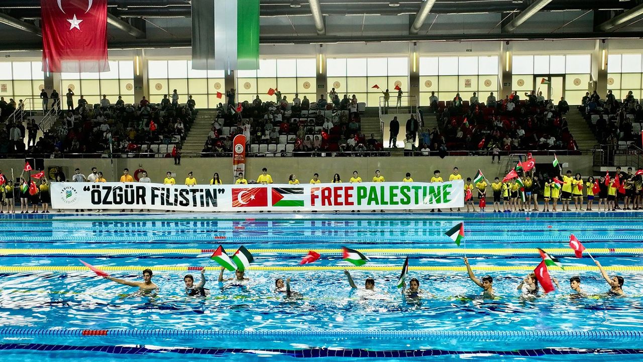 Yarışlarda sporcular dereceye girebilmek için kıyasıya mücadele ederken, dostluk ve dayanışma ruhu her an hissedildi. Tribünlerde dalgalanan Türkiye ve Filistin bayrakları eşliğinde, yarışlar boyunca hem havuzda hem de tribünlerde unutulmaz ve duygusal anlara tanıklık edildi.
