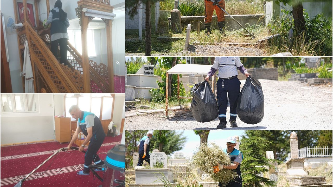 Sosyal belediyecilik anlayışıyla hizmetlerini sürdüren Battalgazi Belediyesi, bayram öncesinde vatandaşların manevi ihtiyaçlarını da gözeterek cami ve mezarlıklarda kapsamlı temizlik çalışmaları yürüttü. Mezarlıklarda ot temizliği, çevre düzenlemesi ve genel temizlik çalışmaları yapılırken; yollar süpürüldü, atık alanları temizlendi. Vatandaşların ziyaretlerini daha kolay ve güvenli şekilde gerçekleştirebilmeleri adına gerekli düzenlemeler hayata geçirildi. Camilerde ise halılar süpürüldü, abdesthaneler dezenfekte edildi, avlular yıkanarak bayram namazı için hazır hale getirildi. Temizlik hizmetlerinde hijyen kadar estetik unsurlar da gözetildi.