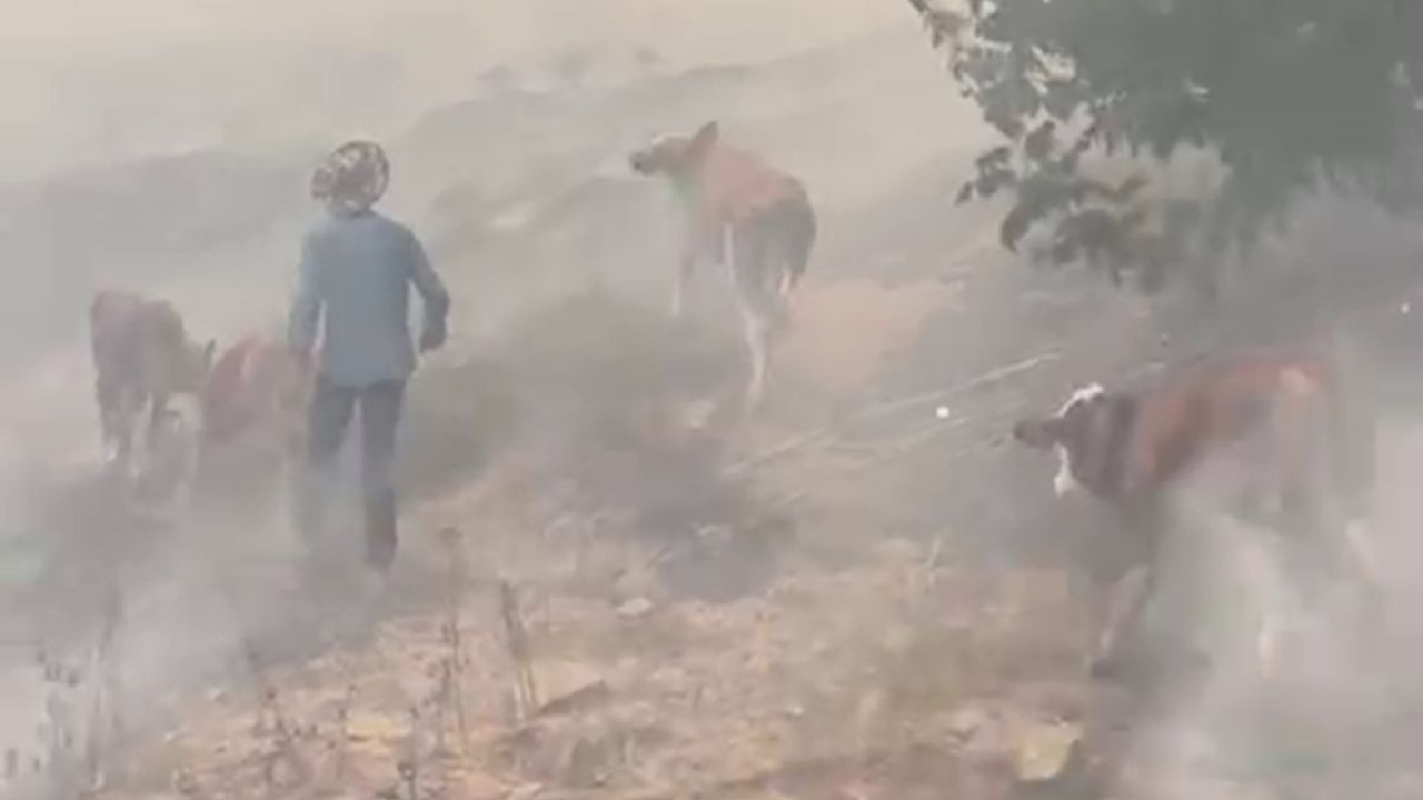 Hayvanlar güvenli alanlara alınırken, çevredeki vatandaşlar da söndürme çalışmalarına destek verdi.