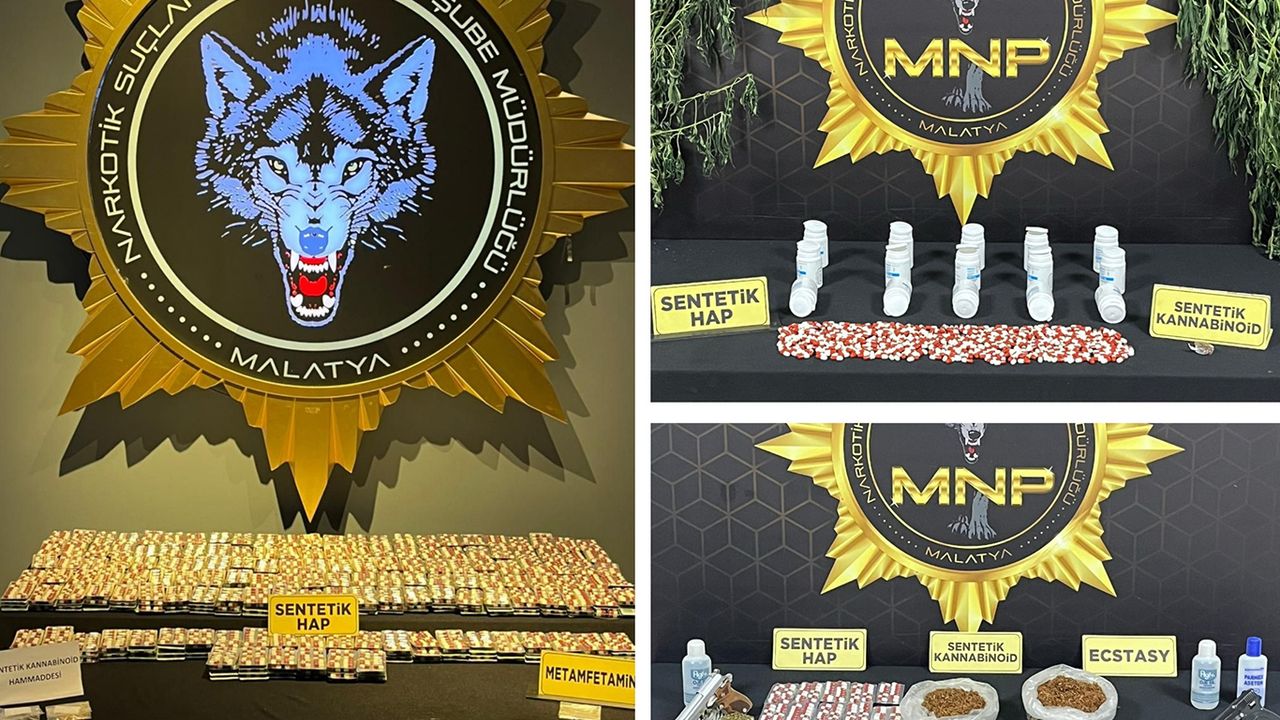 9 şüpheli şahsa ait olmak üzere 4 iş yeri, 3 araç ve 11 ikamette yapılan aramalarda; 9 bin 824 adet sentetik ecza hap, 293 gram sentetik kannabinoid maddesi, 12,3 gram sentetik kannabinoid ham maddesi 5,41 gram metamfetamin maddesi, 8 kök kenevir bitkisi, 2 adet ruhsatsız tabanca, 1 adet ecstasy hap, 1 adet hassas terazi ele geçirildi.