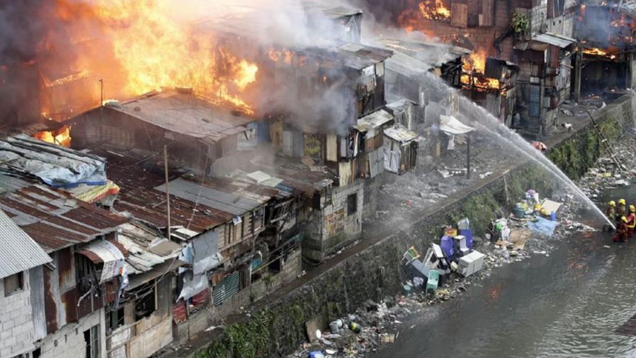 Filipinler Yangından Korunma Bürosu'ndan yapılan açıklamaya göre yangın, birbirine yakın şekilde hafif malzemeden yapılma evlere sıçrayarak hızla yayıldı.