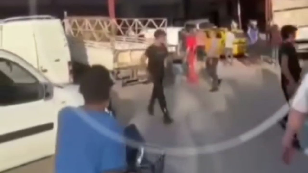 Görüntülerde, ellerindeki levyelerle kavga eden gruba polisin biber gazı sıkarak müdahale ettiği ve tarafları ayırdığı görülüyor.