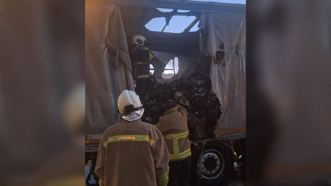 Sürücüsünün kimliği henüz öğrenilemeyen 73 ABE 512 plakalı tır'ın dorsesinde, henüz bilinmeyen bir nedenle yangın çıktı.