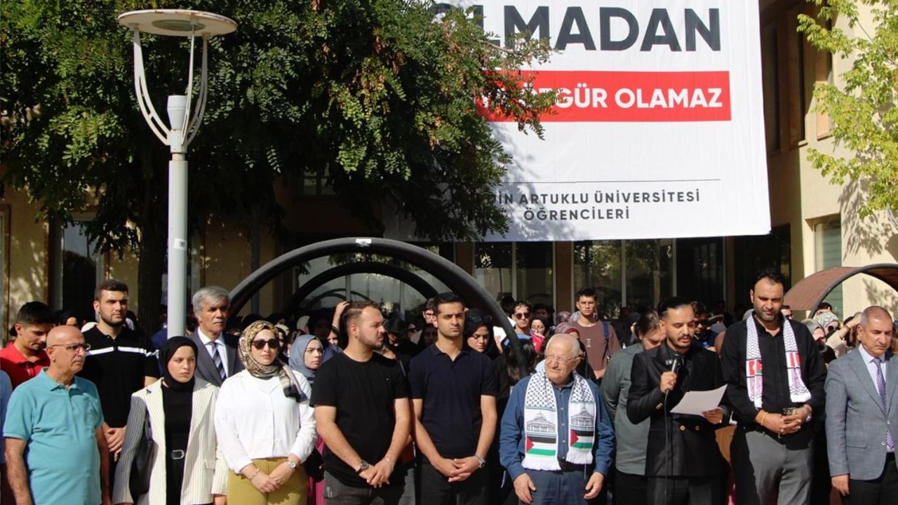 Aksa Tufanı yıl dönümü nedeniyle Mardin Artuklu Üniversite öğrenci toplulukları bir araya gelerek, basın açıklaması düzenledi.