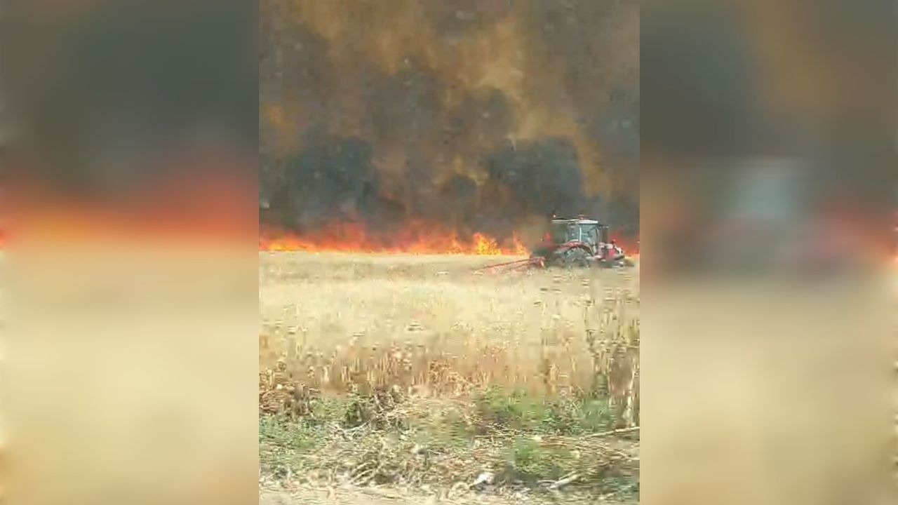 Rüzgarın da etkisiyle hızla büyüyen yangına mahalleliler traktörlerle müdahale ederek kontrol altına aldı.
