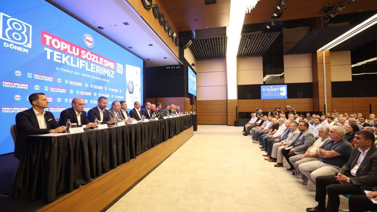 Memur-Sen Genel Merkezi’nde gerçekleştirilen basın açıklamasına Memur-Sen Genel Başkanı Ali Yalçın, Memur-Sen Yönetim Kurulu Üyeleri, bağlı sendikaların genel başkanları ve davetliler katıldı.