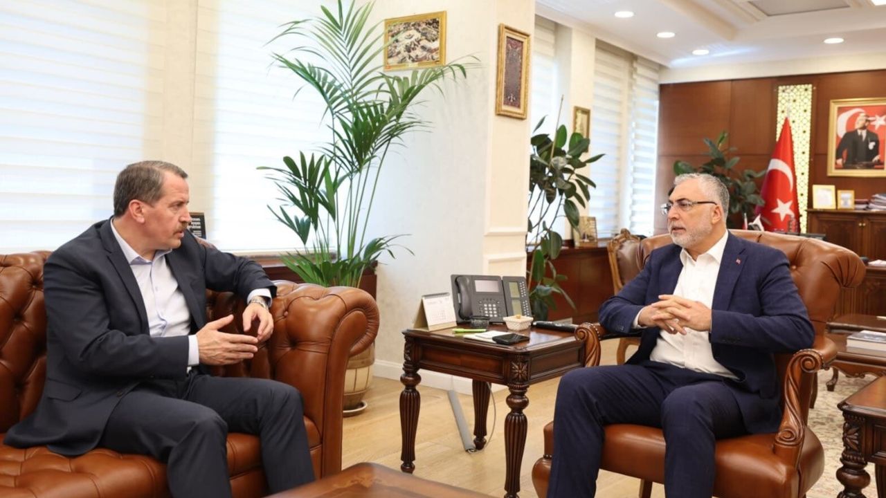 Toplu sözleşme görüşmeleri kapsamında Memur-Sen Genel Başkanı ve Kamu Görevlileri Sendikaları Heyet Başkanı Ali Yalçın, Çalışma ve Sosyal Güvenlik Bakanı ve aynı zamanda Kamu İşveren Heyeti Başkanı Vedat Işıkhan ile bir araya geldi.