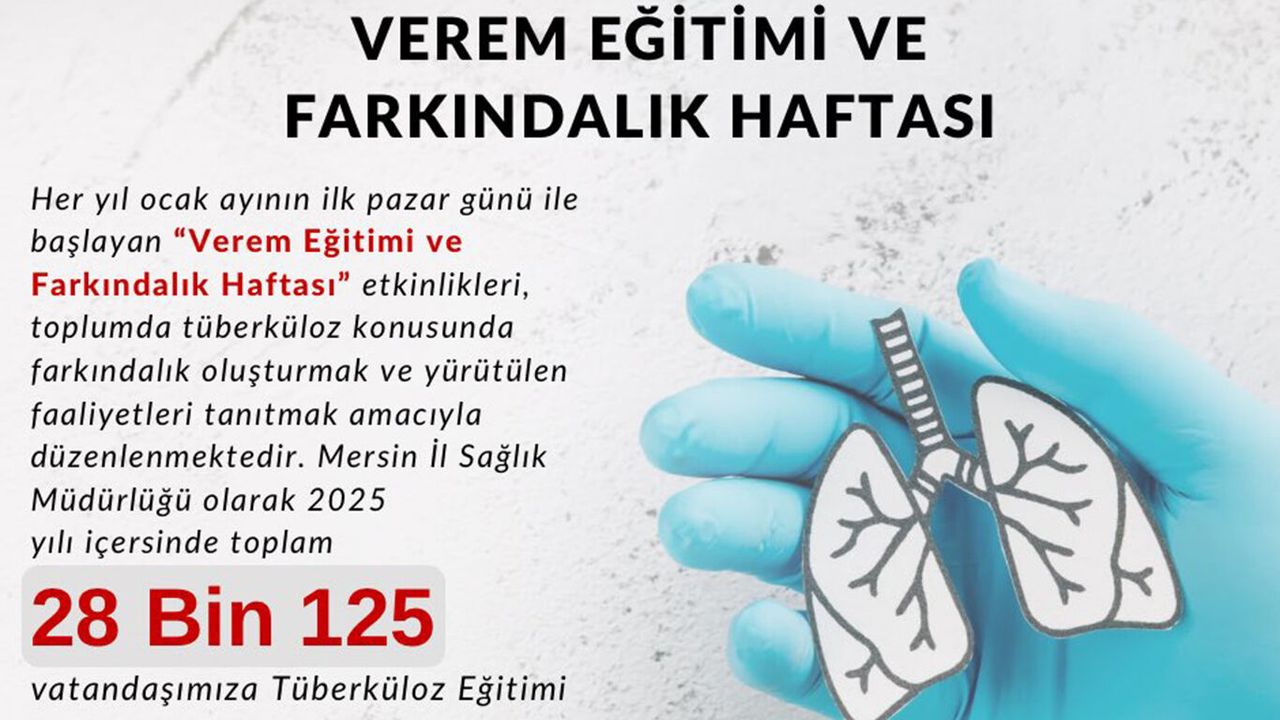 Bu kapsamda Mersin İl Sağlık Müdürlüğü, 2025 yılı içerisinde il genelinde yürüttüğü eğitim faaliyetleriyle toplam 28 bin 125 vatandaşa tüberküloz hakkında bilgilendirme eğitimi verdi.