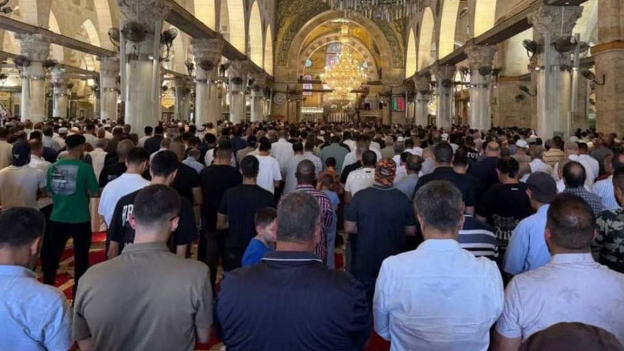 İşgalci rejimin sıkı güvenlik önlemleri ve kısıtlamalarına rağmen on binlerce Müslüman bugün Mescid-i Aksa'ya akın etti.