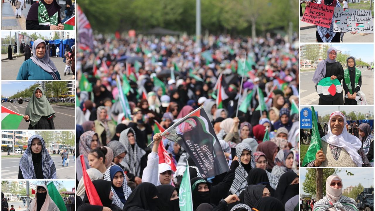 Nevruz Park Miting Alanı'nda gerçekleştirilen etkinliğe çok sayıda vatandaş katıldı. Etkinliğe katılan kadınlar duygularını ifade ederken Gazze'yi unutmadı.