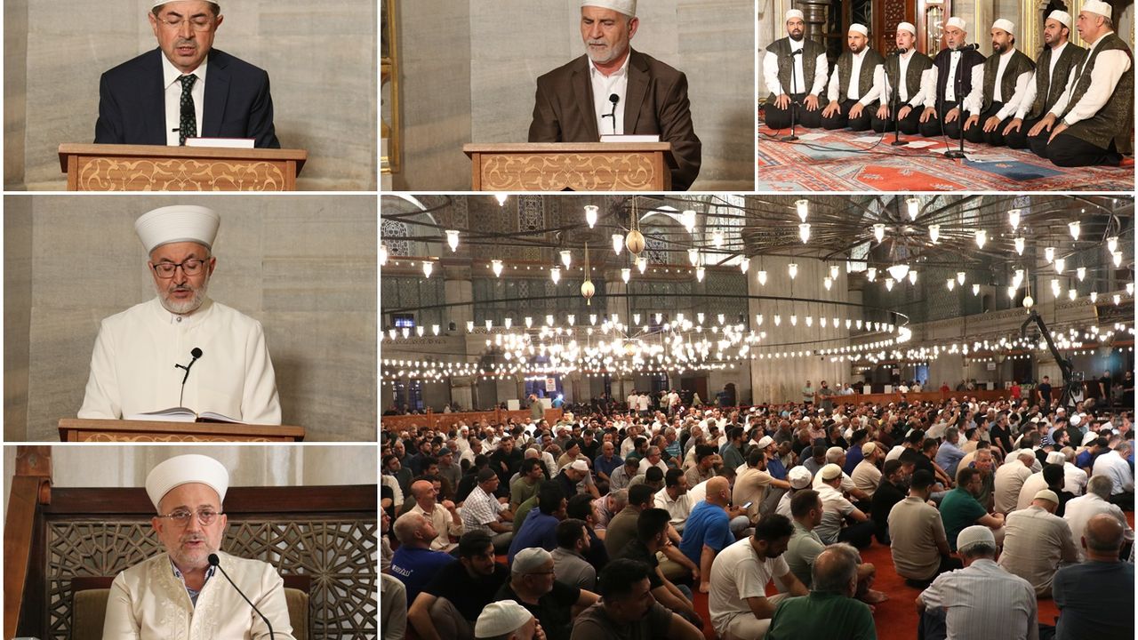 İstanbul Müftülüğü tarafından Sultanahmet Camii'nde akşam namazına müteakiben yoğun katılımla gerçekleştirilen program, Kur'an-ı Kerim tilaveti ile başladı.