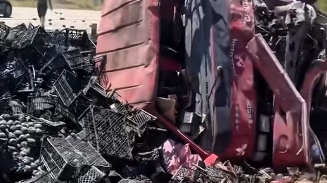 Meyve kasalarının yola savrulduğu kazada kamyon sürücüsü yaralandı.