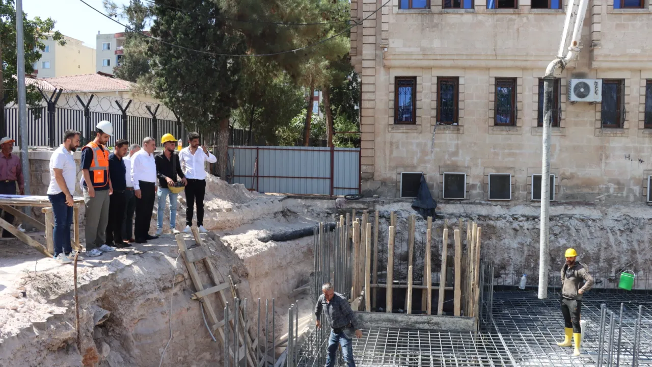 Midyat Belediyesi, artan nüfus ve gelişen şehir yapısına paralel olarak hizmet kapasitesini artırmak amacıyla yeni ek belediye hizmet binasının temelini attı.MARDİN (İGFA) - Temel atma törenine Midyat Belediye Başkanı Veysi Şahin, başkan yardımcıları Masum Cengiz ve Rıdvan Akyol, Fen İşleri Müdürü Veysel Tunç, birim müdürleri ve davetliler katıldı.