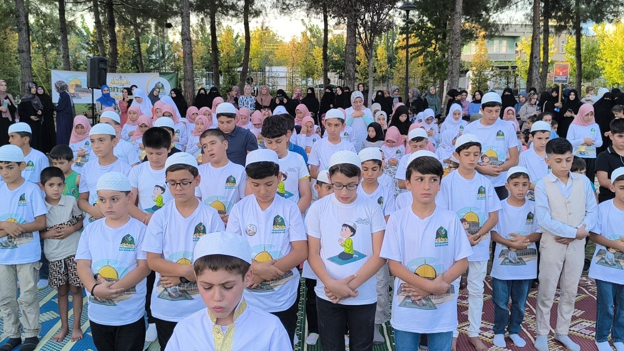 Program öncesinde bir araya gelen minik çocuklar, ellerinde “Hayat Namazla Güzeldir” dövizleriyle etkinlik alanına kadar yürüyüş gerçekleştirdi.